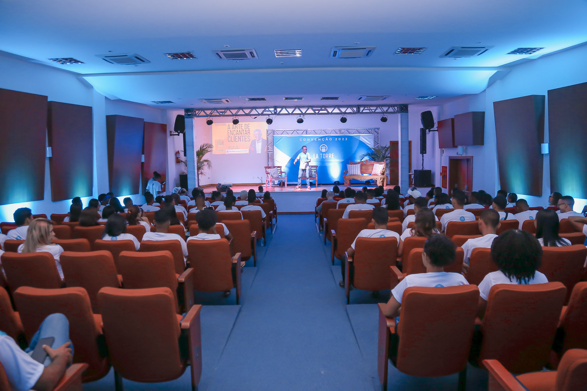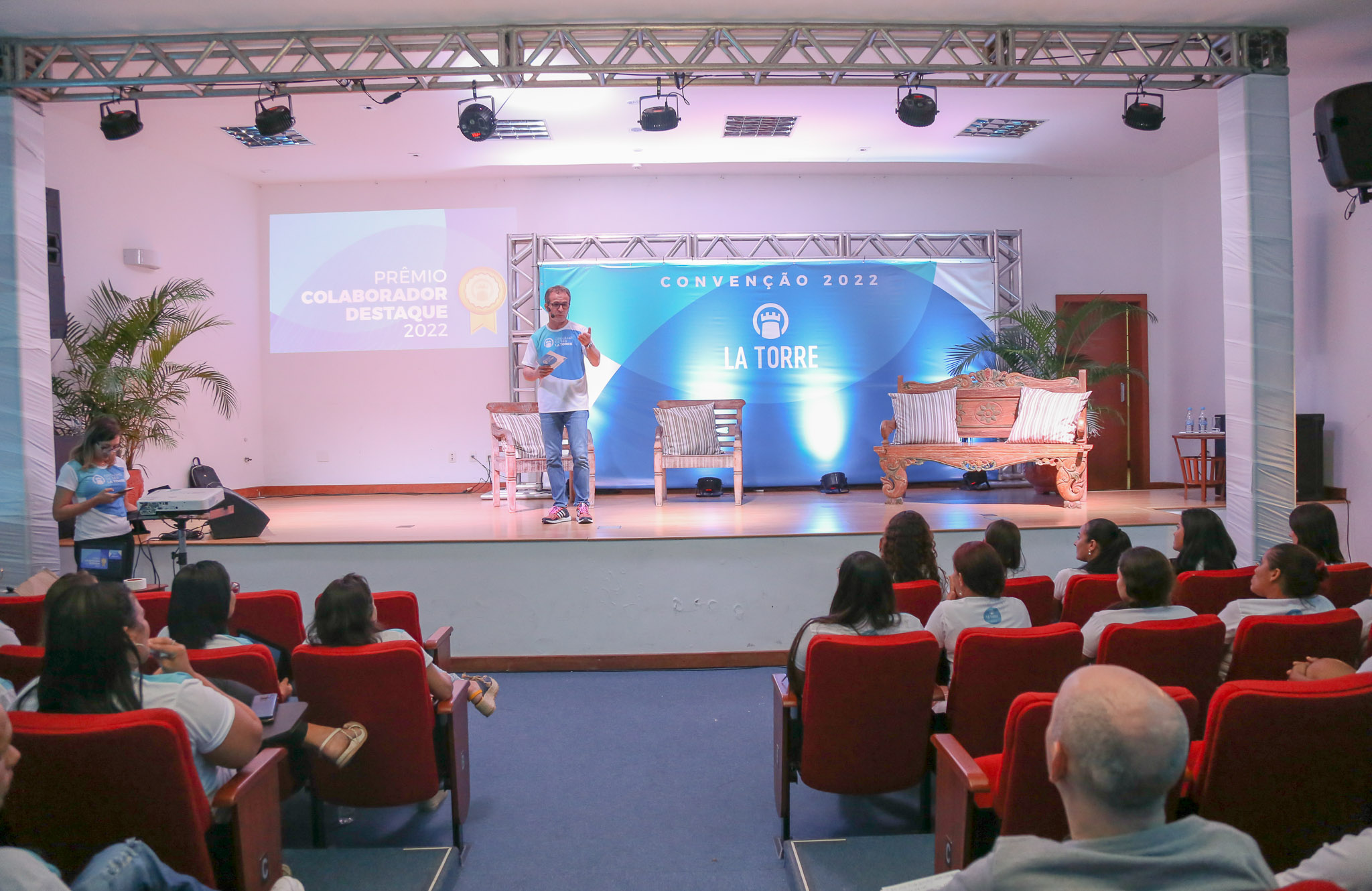 O evento mais esperado do ano para os mais de 500 colaboradores do La Torre aconteceu nesta quinta-feira (10) e sexta-feira (11), no Senac, em Porto Seguro. Este é o quarto ano que o Grupo realiza a Convenção. Ao passo que, é um momento importante para compartilhar histórias, celebrar conquistas e exaltar os valores e cultura do La Torre. O diretor geral do Grupo, Luigi Rotunno, foi um dos palestrantes do encontro e destacou as principais conquistas ao longo desses 18 anos de história. "Day off” de aniversário, empréstimo sem juros ao trabalhador, auxílio criança, plano odontológico, seguro de vida e o canal de ética, novidade neste ano de 2022. Além disso, teve premiação a 20 colaboradores que se destacaram com dedicação e integridade, seguindo os valores da empresa. “La Torre é uma forma de viver. Somos resultado de um modelo de gestão original, que tem como cultura colocar as pessoas no centro das decisões. Com respeito a diversidade e preocupação com o crescimento pessoal e profissional de cada um, afinal, nosso bem maior são vocês.” Pontuou Luigi, que lembrou do nascimento do La Torre com apenas 23 colaboradores e agora essa família já tem mais de 500. PALESTRA COM ERIK PENNA Certamente, outro palestrante que abrilhantou o evento foi Erik Penna, autor de 6 livros e do best seller: “A arte de encantar clientes”. Sob o tema “encantamento,” Erik de forma descontraída falou sobre os pilares da excelência. Segundo ele, são eles que resultam em um modelo de negócio de sucesso, como o La Torre, premiado entre as melhores empresas para se trabalhar, pelo GPTW (Great Place to Work). Como resultado, os dois dias foram marcados por alegria, emoção e acima de tudo muito orgulho de ser La Torre. Assim, às vésperas de mais uma grande temporada de verão, a convenção integrou ainda mais as equipes. Ou seja, renovou as energias para mais um ano de trabalho guiado pela maior paixão do Grupo: a hospitalidade. Fotos: Juliano Monteiro Saiba mais sobre o Grupo La Torre e seus colaboradores clicando aqui. Quer se hospedar no La Torre? Clique aqui.