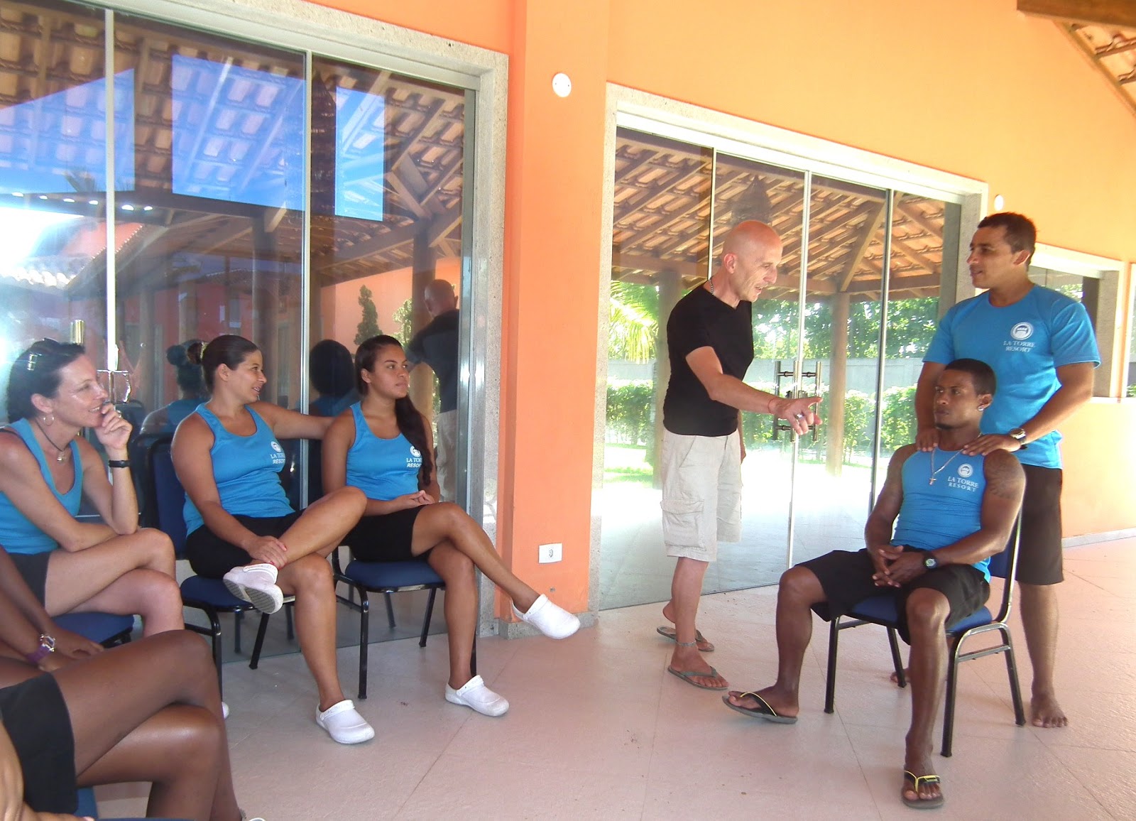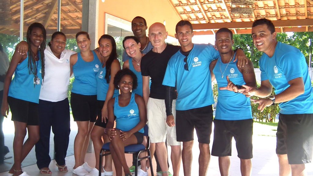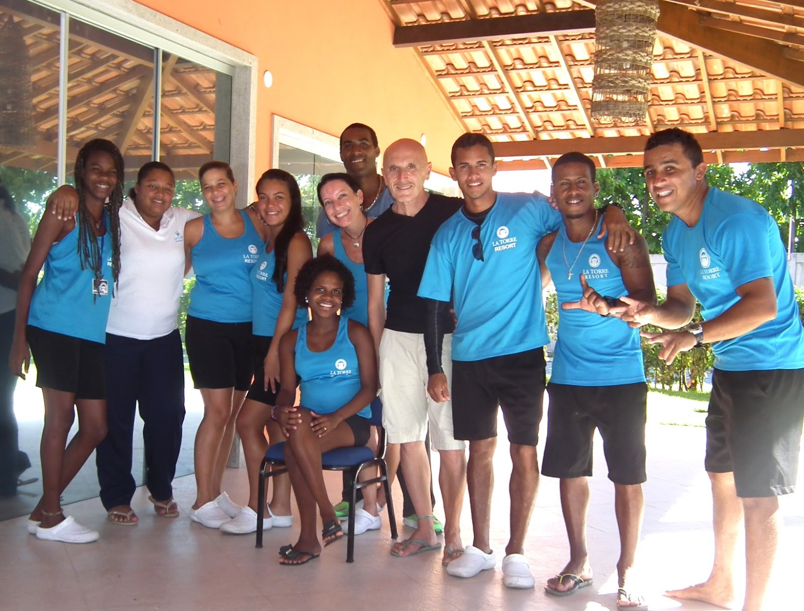 A equipe de Lazer do La Torre Resort de Porto Seguro (BA) está fazendo um curso de Expressão Teatral ministrado pelo diretor e professor italiano Enrico Fasella. Os animadores do La Torre estão aprendendo como se comportar com o público de hóspedes em todas as atividades de animação, exercícios de empatia, postura e comunicação facial, visando obter a “máscara neutra” e até a “máscara da comédia da arte”. De acordo com a gerente de Lazer do La Torre Resort, Lili, os 12 monitores participantes do curso estão aprendendo a se concentrar, “além do uso da voz, o uso dos movimentos e como o público nos vê”, comentou Lili. “Aprender a ser atores em relação a um público heterogêneo como o hóspede de um resort”, acrescentou o diretor e professor Enrico Fasella, que representa a companhia teatral Torino Spettacoli. “Esta oportunidade de capacitar nossa equipe de lazer com um profissional como Enrico Fasella è única”, salientou o diretor geral do La Torre Resort, Luigi Rotunno, “Estamos procurando desenvolver um lazer diferente que proporcione uma experiência para os hóspedes”. O curso começou no dia 12 de maio e terá uma duração de quase 8 meses. No final do curso, os alunos receberão um atestado da companhia Torino Spettacoli e do La Torre Resort e encenarão uma peça no teatro Bolha Branca do La Torre Resort.