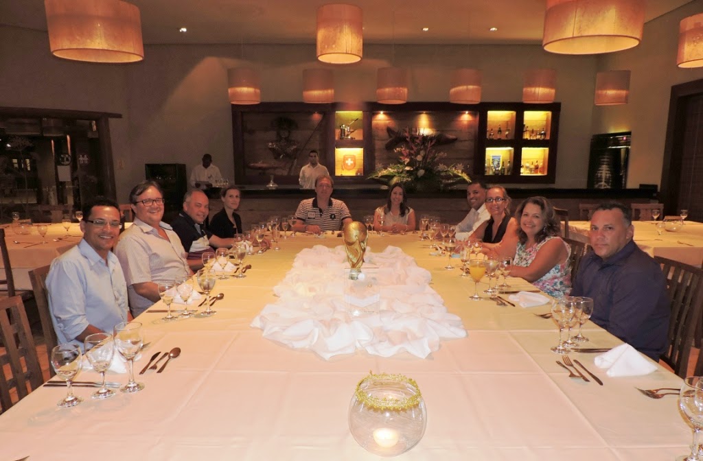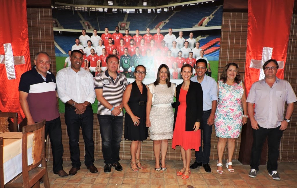 Após a cerimônia pública em comemoração à instalação do Relógio Suíço, doado a Porto Seguro pela SBB, o diretor geral do La Torre Resort, Luigi Rotunno ofereceu um jantar especial aos representantes do Consulado Suíço no Lounge Bar, local que ficou reservado exclusivamente para refeições e reuniões da Seleção Suíça durante a Copa do Mundo 2014. Representando André Regli, Embaixador da Suíça, o Cônsul Daniel Kuns e Michele De Aquino, Assessora da Embaixada da Suíça em Brasília compareceram no jantar, juntamente com a Prefeita de Porto Seguro Cláudia Oliveira, vereadores e secretários municipais. O espaço foi decorado como esteve durante a Copa e os pratos servidos faziam parte do cardápio da Seleção durante sua estadia no La Torre, tendo inclusive Vitelo Grelhado e Brownie ensinados pelo Chef Emil Bolli. Daniel Kuns e Cláudia Oliveira fizeram agradecimentos a Luigi Rotunno e parabenizaram a equipe de AeB liderada por Gi Del Santi e Geovane Matos. Na oportunidade os convidados aproveitaram para fazer fotos e matar a saudade dos bons momentos da Copa.
