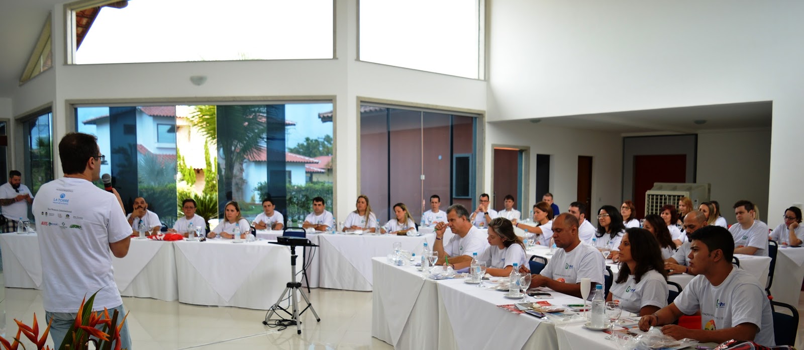 Flávio Louro (diretor geral da E-HTL) e Luigi Rotunno (diretor geral do La Torre) Entre os dias 16 e 20 de setembro acontece a Convenção de Vendas E-HTL, no La Torre Resort All Inclusive, na Praia do Mutá, em Porto Seguro-BA. Durante esse período serão desenvolvidos trabalhos com os principais parceiros, dentre eles, hotéis, executivos comerciais, empresas de locação de veículos e demais segmentos, sob o tema “Crescimento e Profissionalismo”. Para Luigi Rotunno, diretor geral do Resort La Torre, a Convenção Anual E-HTL é um evento de grande importância e, sem dúvida, uma excelente oportunidade para os profissionais conhecerem o destino turístico e o novo conceito do La Torre, através da experiência vivida nesta estadia. Objetivando incentivar e desafiar os colaboradores a alcançar metas ainda maiores, Flávio Louro, diretor geral da E-HTL afirma que essa integração das equipes é fundamental para os resultados operacionais e diante dos bons resultados já alcançados, a convenção será também o momento de planejamento estratégico para 2016. Luigi Rotunno apresentando o La Torre e suas experiências de crescimento e valor de uma equipe Renata Righi e Cinthya Costa apresentando as principais ferramentas de vendas do La Torre Luigi Rotunno concedendo entrevista para jornais e sites do Trade Turístico Colaboradores E-HTL em intervalo dos trabalhos
