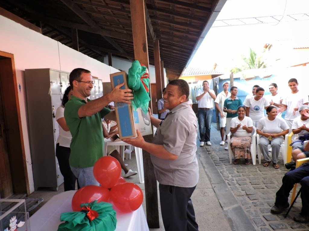 O diretor geral do La Torre Resort, Luigi Rotunno entrega o televisor ao ganhador Ezequiel Souza dos Santos Papai Noel chegou mais cedo no La Torre Resort em Porto Seguro, vários prêmios foram sorteados para os colaboradores e a alegria tomou conta de todos. Ezequiel Souza dos Santos, agente de portaria que faz parte da equipe La Torre há 03 anos foi o felizardo que ganhou o Televisor LED tão desejado. Sem dúvida a tarde desta quinta-feira foi mais feliz para esses trabalhadores. Aparelho de jantar, cesta de Natal e outros presentes foram sorteados e mais prêmios estão por vir, é o La Torre fazendo mais por seus colaboradores.