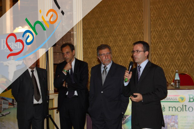 Milão (De Mídia Mutá)- Agentes de viagens e jornalistas italianos participaram do roadshow de capacitação sobre Brasil, Bahia e Porto Seguro, em Milão, dia 26/5, para o voo Milão-PortoSeguro-Salvador-Milão Axé Brasil/Blue Panorama. A apresentação contou com o secretário estadual de Turismo da Bahia Domingos Leonelli, os diretores de Axé Brasil, Américo Risotto, Blue Panorama Remo della Porta e Resort La Torre, Luigi Rotunno. O voo inicia no dia 20 de julho, tem frequencia semanal e continua até abril de 2012. Bahia e Porto Seguro foram apresentados em vídeos, fotos, folderes e cartazes aos participantes, agentes de viagens e imprensa. Cerca 200 pessoas (dentre elas 40 jornalistas) participaram do evento que, pela primeira vez contou com a presença de um secretário estadual de turismo, Domingos Leonelli. Depois da participação do Governador da Bahia Jacques Wagner em palestra para investidores, no dia 10 de maio, agora foi a vez de divulgar as belezas e os atrativo da Bahia e de Porto Seguro e do voo direto que permite a ligação direta entre Italia e Bahia, de 20 julho próximo até abril de 2012. "Há uma grande proximidade cultural entre a Itália e a Bahia", enfatizou o Secretário Estadual Domingos Leonelli, "portanto acreditamos no produto e depois deste voo desejamos um segundo fretamento semanal de Milão para Bahia". Américo Risotto, da Axé Brasil agradeceu o apoio do Governo do Estado da Bahia, "foi o melhor jamais recebido e não medimos esforços para que a operação seja um sucesso. Remo della Porta, de Blue Panorama, destacou a volta nos céus brasileiros da companhia aérea, "depois de 3 anos de ausência voltamos para ficar e implementar o tráfego aéreo com o Brasil". Pelo setor hoteleiro o Resort La Torre demonstrou ser a única estrutura que persiste no mercado italiano, com regularidade, há cinco anos, "somos sempre parceiros das operadoras e companhias aéreas", explicou Luigi Rotunno, "para nós não é suficiente esperar os turistas chegarem, é preciso ir buscá-los". O evento iniciou as 19h e terminou as 21h – seguido de um bufê e coquetel até as 23h00. Musica ao vivo brasileira – Hotel Marriott no centro de Milão. O voo inicia dia 20 de Julho 2011. Milão – Porto Seguro – Salvador – Milão – rotação semanal. Mídia Mutá/Antonio Alberghini
