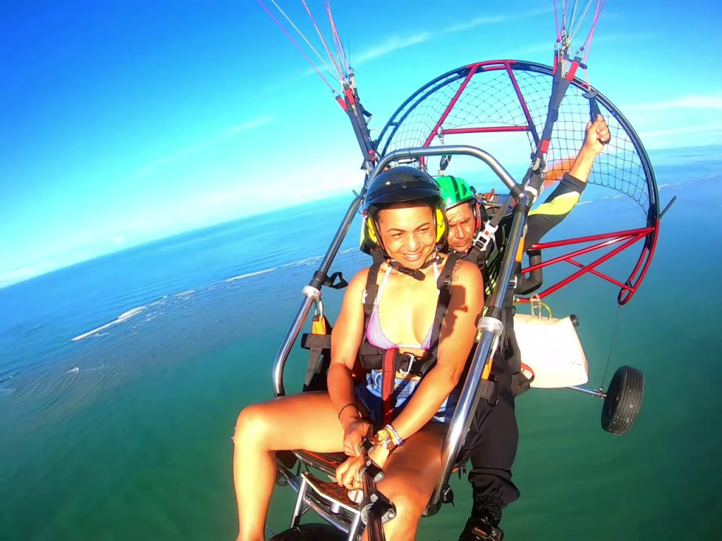 O verão do La Torre promete muita diversão e experiências super especiais, o paratrike é uma das atrações que vão agitar as férias de janeiro no resort. Mas afinal, você sabe o que é o paratrike? É a combinação do parapente com o trike, que se trata de um veículo motorizado. Essa junção proporciona um maior conforto no voo, tanto para o piloto quanto para os acompanhantes. Todos os procedimentos - decolagem, voo e pouso são realizados de forma mais tranquila, pois, os participantes permanecem sentados sem precisar fazer nenhum esforço físico. Paratrike é experiência inédita em Porto Seguro Os equipamentos são de alta segurança, e o modelo de paratrike que estará disponível no La Torre, tem capacidade para 3 pessoas, o piloto e mais dois acompanhantes. Pela primeira vez em Porto Seguro será possível voar nessa modalidade motorizada de parapente com 3 assentos. É o La Torre trazendo inovação e aventura para seus hóspedes no verão. A empresa Torre dos Ventos, que fará os voos com os hóspedes do La Torre, é uma escola especializada também na formação de alunos de Paramotor e Voo Livre. Localizada em Porto Seguro BA, Maragogi AL e Poços de Caldas MG, possui uma equipe altamente qualificada com instrutores homologados. O passeio será realizado sobrevoando a lindíssima Praia do Mutá, com uma vista panorâmica da região. Com certeza essa vivência vai encantar a todos com uma bela visão das maravilhosas paisagens da orla de Porto Seguro. O voo tem tempo estimado em aproximadamente 10 minutos, e proporciona uma sensação única de liberdade. Os voos podem ser de um ou dois passageiros com peso total de no máximo 150 kg somados. A idade mínima para realização do voo panorâmico de instrução é de 4 anos. Crianças de 4 a 12 anos terão que estar acompanhadas por um responsável e não há idade máxima e nem restrição por condição física para realização dos voos. A experiência de paratrike faz parte da programação de verão do resort, e pode ser aproveitada entre os dias 02 e 31 de janeiro. Faça já sua reserva e venha viver momentos únicos com a gente aqui no Resort La Torre. Conheça mais sobre nossas experiências de verão clicando aqui. Clique aqui e aproveite para fazer sua reserva e ter uma verdadeira férias dos sonhos.