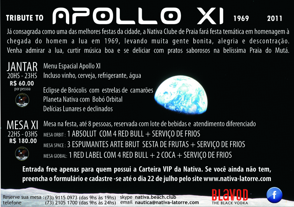 PORTO SEGURO - ORLA NORTE EM FESTA Nativa Clube de Praia, Cabana e Arena Axé Moi, barraca Toa Toa, Barramares e Ilha dos Aquários, Transilvânia esses são alguns dos locais mais procurados de Porto Seguro para as badaladas festas. Assim é a Orla Norte da cidade, sempre com muita animação, boa música e gente bonita. Pensando em movimentar a estada dos estudantes que chegam de Belo Horizonte nesta semana, o La Torre Resort em parceria com o grupo Axé Moi, fechou programação para semana. Dando continuidade aos agitos do mês das férias, a Nativa Clube de Praia retoma as festas no próximo dia 17 com a FESTA BRANCA e no dia 20, o LUAU HAVAIANO sob o comando do DJ Kuko. Essas são festas exclusivas que a equipe do La Torre Resort preparou para receber os adolescentes que vieram da capital mineira através da empresa Planeta Jovem. MICARETA AXÉ PORTO COM TOMATE E EVA Nos dias 18 e 19, é a vez das bandas Tomate e Eva. Hóspedes do La Torre Resort, fazerem a festa na Arena Axé Moi. A aguardada Micareta Axé Porto começa com Tomate às 22h. Na terça – feira quem comanda é a banda Eva que pede aos participantes, o uso de roupa branca. Os portões da arena, neste dia, abrirão às 16h. APOLLO XI Dando continuidade a programação, a Nativa Clube de Praia inova com a Festa APOLLO XI 2011, esta que irá deixar os clientes mais exigentes com água na boca. Uma festa regada a champagne, red Bull e deliciosos pratos feitos com os mais variados frutos do mar. Confira a programação da Nativa para o dia 23 deste mês: JANTAR TEMÁTICO Das 20h às 23h, venha se deliciar com o jantar temático que contará com os mais refinados pratos de frutos do mar. Bebidas que vão da cerveja ao vinho, fazem parte do menu. As mesas (de 04 e 06 lugares) podem ser reservadas no site da nativa: www.nativa-latorre.com ou pelos telefones (73) 2105 1700 e 9115 0973. O valor é de R$ 60,00 por pessoa. A FESTA Com atendimento diferenciado, A Festa começa às 22h e vai até as 03h da madrugada. Garanta sua mesa de 08 lugares pelo valor de R$ 180,00 e aproveite o que ela lhe oferece: Mesa Orbit– 01 Absolut com 04 Red Bull + Serviço de frios; Mesa Space– 03 espumantes + Cesta de frutas + Serviço de frios; Mesa Global– 01 RedLabel com 04 Red Bull + 02 Cocas + Serviço de frios. As mesas de 08 lugares também podem ser reservadas pelo site: www.nativa-latorre.com ou pelos telefones (73) 2105 1700 e 9115 0973. E para encerrar com “chave de ouro” os festejos de julho, no dia 25, a partir das 22h, a Cabana de Praia Axé Moi traz de Salvador, o ex-vocalista da banda Jammil– Tuca Fernandes. Agora em carreira solo, o cantor vai mostrar seu novo repertório e promete, como sempre, fazer a galera “tirar os pés” do chão. Garanta seu ingresso e abadá do Axé Moi pelo telefone: (73) 3288 -8921. Jerusa Brandão/Mídia Mutá