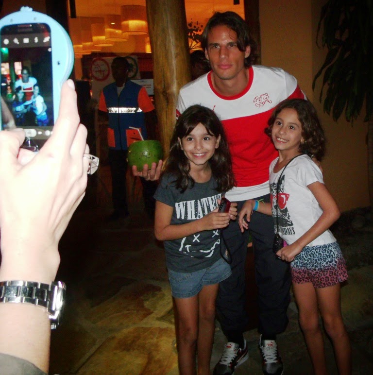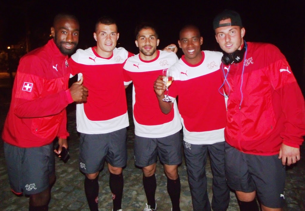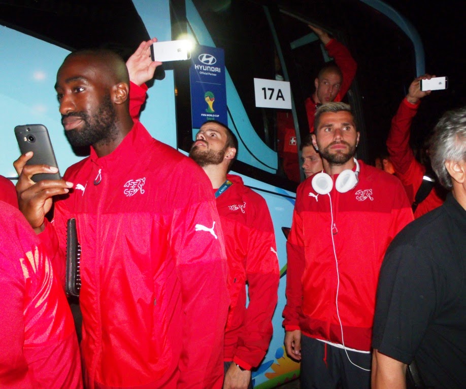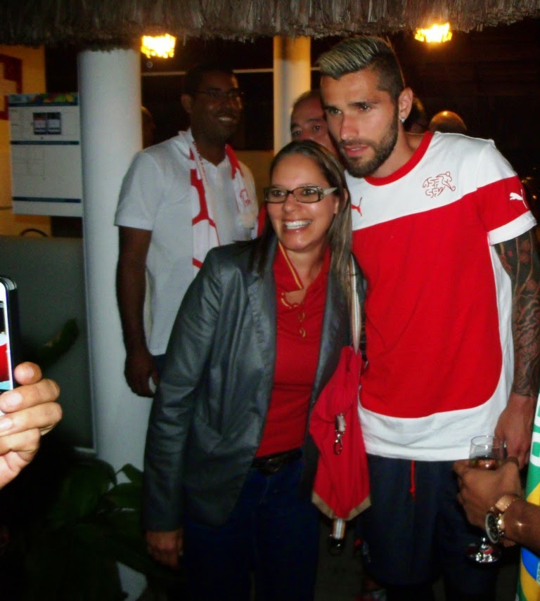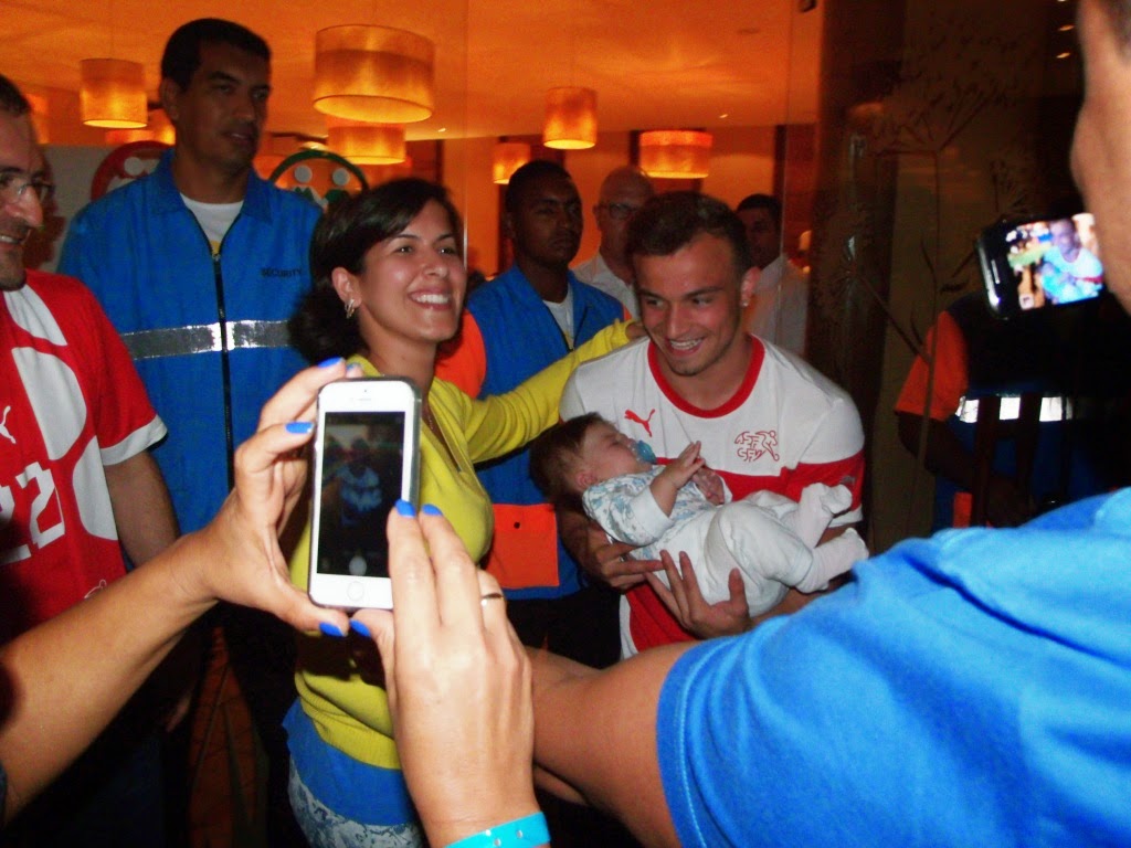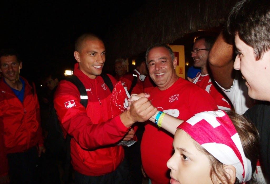 Gritos, choro e muita emoção tomou conta da equipe do Resort Sede Oficial da Seleção Suíça nesse domingo 15 de junho de 2014. Com charanga, champagne e muitos aplausos, os atletas suíços foram recebidos no La Torre Resort e com uma simpatia sem igual posaram para fotos, abraçaram as crianças e se divertiram de um jeito bem brasileiro. Encantados com a festa que os esperava e a alegria dos torcedores brasileiros, os jovens que deram um show de bola contra a Seleção do Equador filmaram, fotografaram e divulgaram para o mundo a alegria de estar de volta “em casa”. “Muito obrigado pela torcida” falou o capitão do time Gökhan Inler tentando um agradecimento em português. “Esse jogo foi emocionante. Nós torcemos por essa vitória!” Completou Luigi Rotunno, Diretor Geral do Resort La Torre.